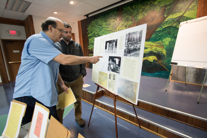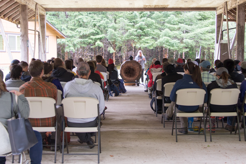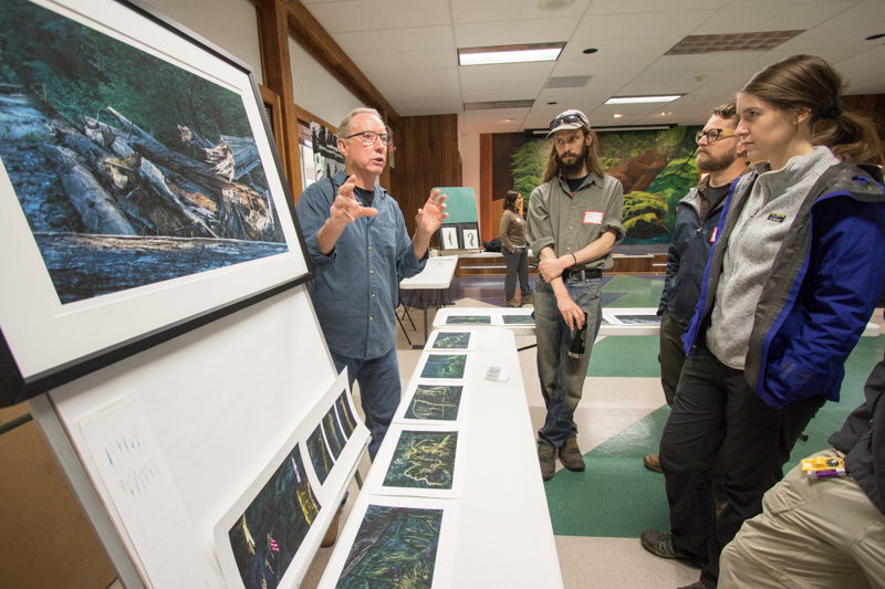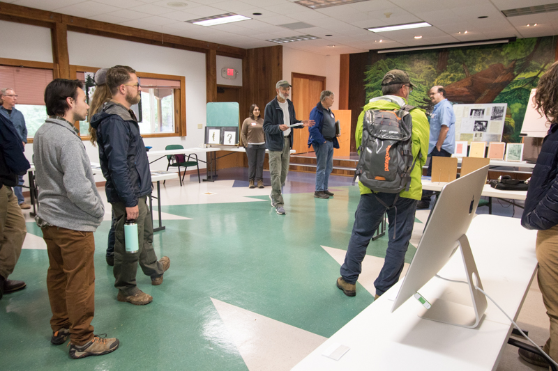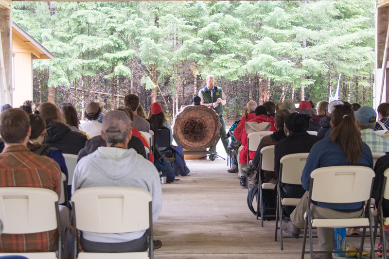 Steve Ackers (left) speaks about the spotted owl