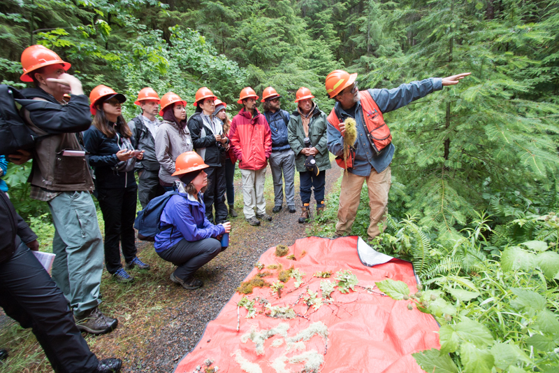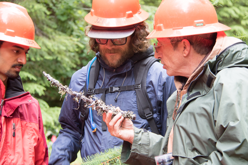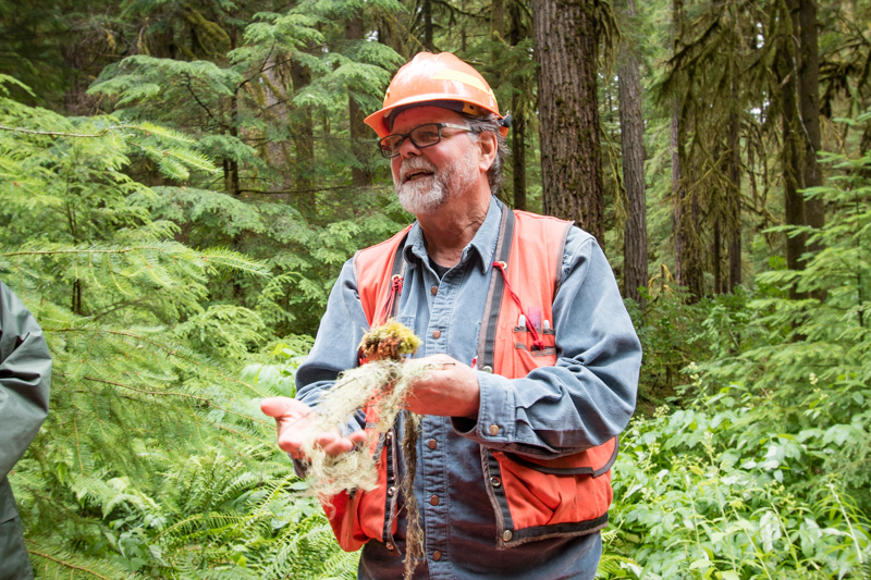 Dave Shaw displays a lichen found in the forest