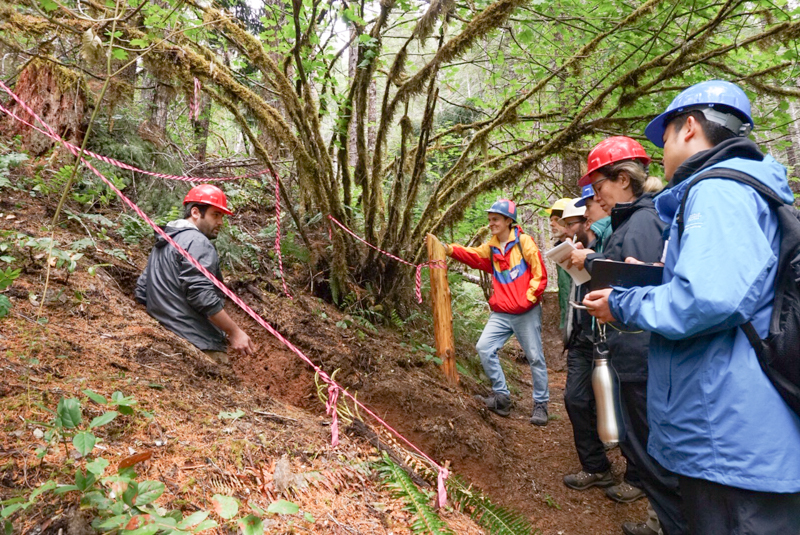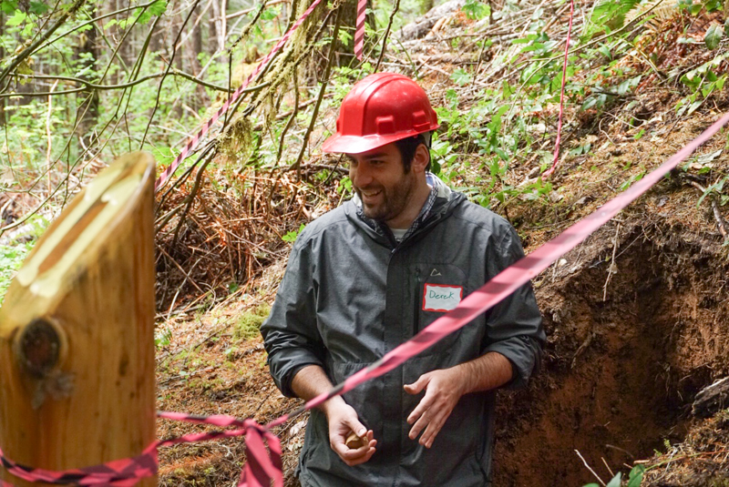 Derek Pierson, in a soil pit, speaks about soils